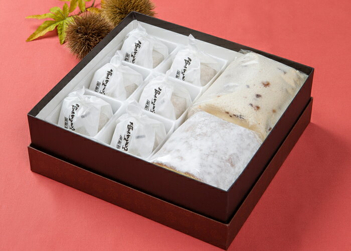 ■渋皮栗入栗きんとんロール(ハーフ)渋皮栗を贅沢に散りばめた生地で栗きんとんとクリームを巻いた栗をふんだんに使用したロールケーキです。